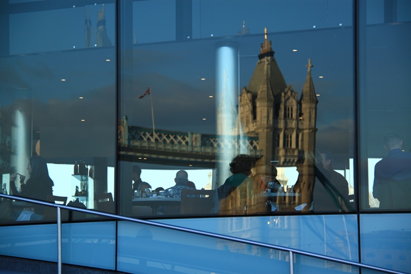 Difficile question : j'aime bien ces multiples reflets, ce qui me parait le plus gênant, c'est le panneau bleu ciel au premier plan :