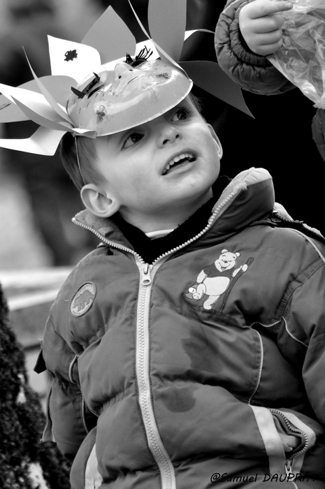 Belle expression du petit garçon! Un recadrage carré en enlevant la partie basse du blouson donnerait je pense plus d'impact à la photo!