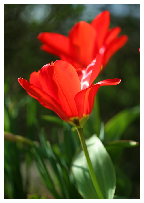 Contre jour, soleil de fin d'après midi, dans l'axe des deux tulipes qui fait des reflets importants un peu cramés. Merci pour le petit bout de pétale, il m'avait échappé quand j'ai posté