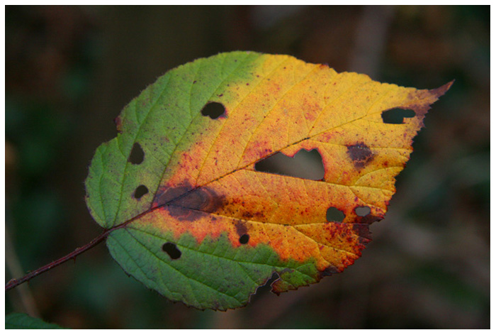 pour les exifs (comme la feuille ne bouge pas) tu aurais pu baisser la vitesse et diminuer l'ouverture et/ou les isos