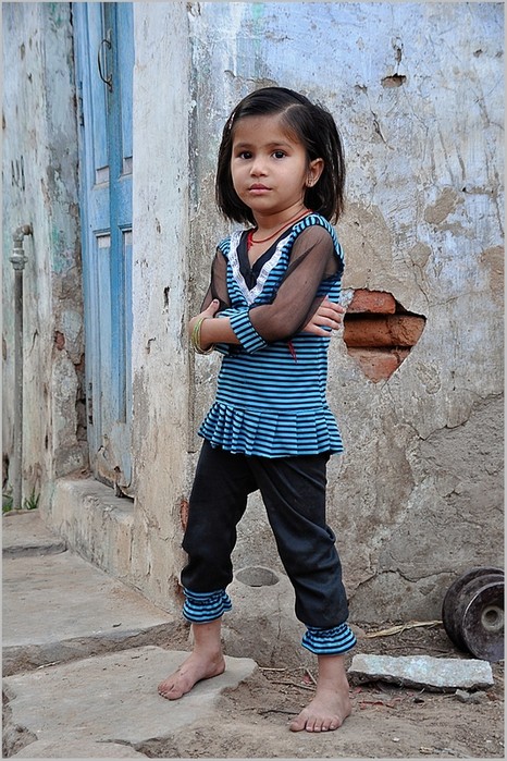 J'aime l'attitude de la gamine et les couleurs de ses vêtements qui rappellent celle de la porte