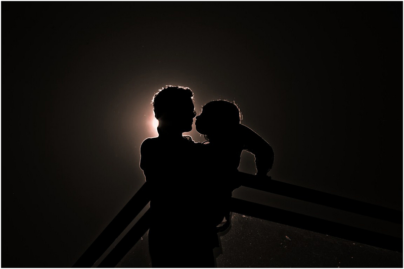 C'est bien un couple, elle est japonaise. Ils sont en haut d'une passerelle (assez haute), en plein soleil, et j'ai visé pour avoir le soleil en arrière plan caché, d'où la vitesse élevée. Le but était de faire un fond noir naturel et d'avoir cette idée du baiser latent en contre jour.