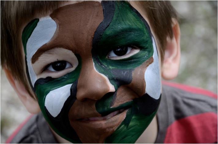 Enfant soldat, ce maquillage est un déguisement chez nous et une réalité malheureuse dans d'autres continents.