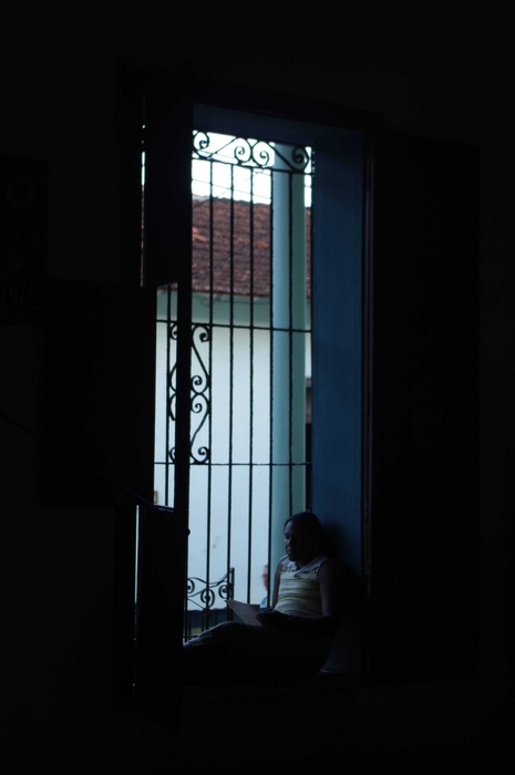 Le cadrage est perfectible. Le personnage y est trop centré. J'aurais plutôt vu un carré, ou alors garder le format vertical pour ne pas couper la fenêtre, mais en décalant à gauche.