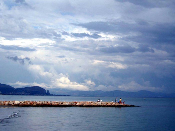 J'aime bien cette cassure de tons bleu par ce bras de pierre avançant dans la mer.