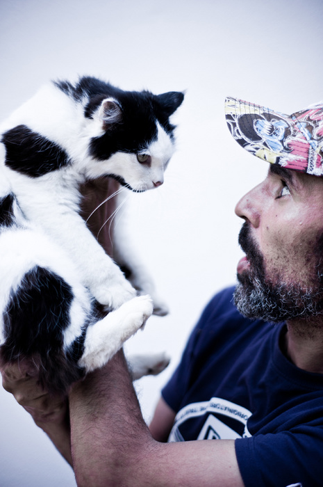 le fond derrière est un peu trop blanc et c'est dommage parce que les regards du chat et de l'homme sont vraiment sympas... j'aime le cadrage
