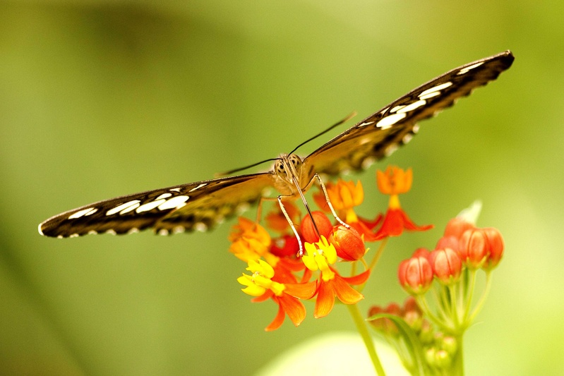 Vue intéressante. La diagonale des ailes, la tête et la trompe. Tant pis pour les couleurs de la voilure, ça change. Le bokeh est top pour moi malgré la tâche marron à gauche en haut.