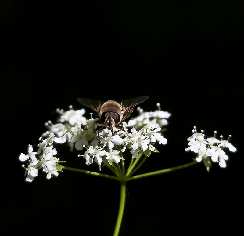 un joli fond noir .... mais la composition est un peu chargée et l'insecte perdu sur la fleur ...