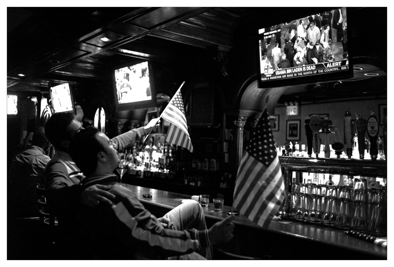 Tout est dans l'image très lisible et en plus elle évoque ce aspect un peu "dérangeant" de la réaction des américains qui ont fêté une mort comme on fête une victoire de coupe du monde. Une photo qui mériterait d'être dans les livres d'histoire.