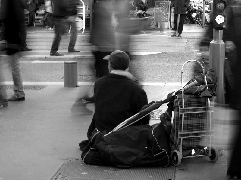 j'aime beaucoup cette photo,elle parle beaucoup avec se flou sur les gens,les gens passe et repasse sans se soucier de la misère ,bravo pour cette pdv qui a beaucoup a dire