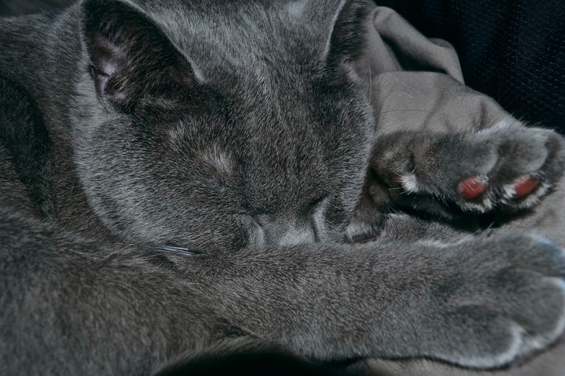 Pour moi, manque un point "d'accroche".. L'ensemble est grisouille et le félin est coupé de partout (oreilles, patte), ce qui ne serait pas gênant en soi s'il y avait dans la photo, un élément accrocheur (les coussinets colorés ne me semblent pas suffisants) ! J'espère être claire et pas blessante
