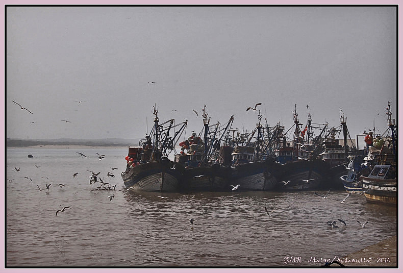 Des bateaux Entassé comme des sardines :) Bien vue mais manque de contraste et de piqué . En n&b peut- être ? J'aime bien cette photo tous ces oiseaux et bateaux .