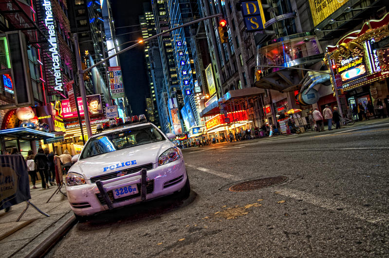 Du grand art, NYC dans toute sa splendeur, la voiture de police, les grandes avenues et les lumières éclatantes et flashy ; très représentatif.