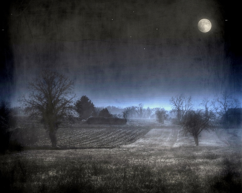 Pas derrière une vitre non, en pleine campagne , temps de brouillard, l'effet est renforcé par une texture légère
