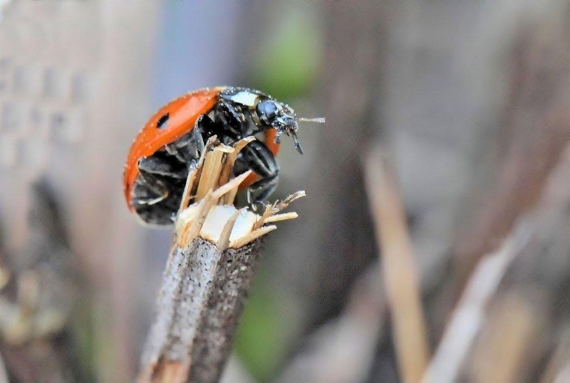 coccinelle dans mon jardin qui s'amusait a monter,descendre dans des positions tt a fait abracadabrantes dont j'ai pris plaisir a suivre le cheminement pendant un bon 1/4 d'heure!