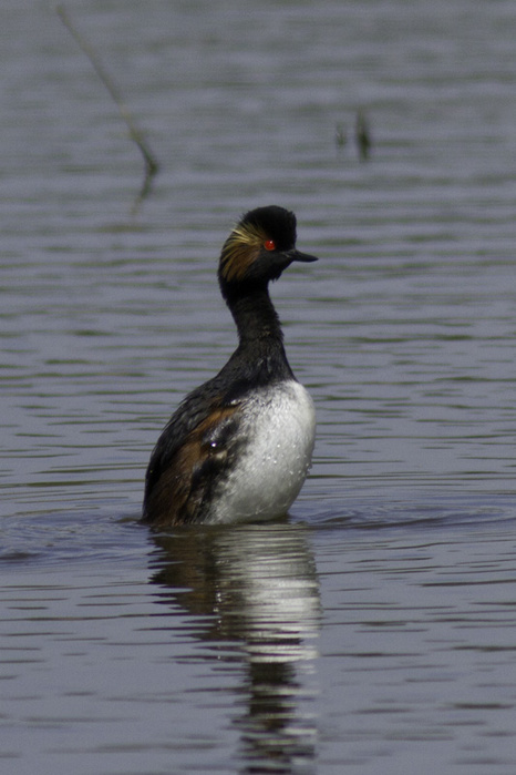 Grebe a cou noir non? La compo est un peu trop centrée pour moi, mais ce qui me gène, c'est un gros manque de netteté du à un crop surement trop important.