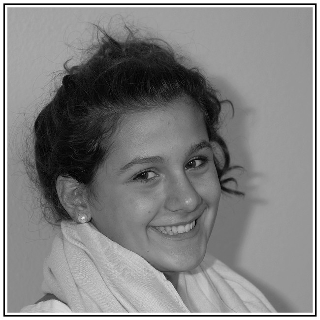 Manque de netteté et ombre génante.L'éclairage se reflète en partie sur le visage en particulier sur l'extrémité du nez...Le nb un peu grisouille...Néanmoins jolie modèle et spontanée...