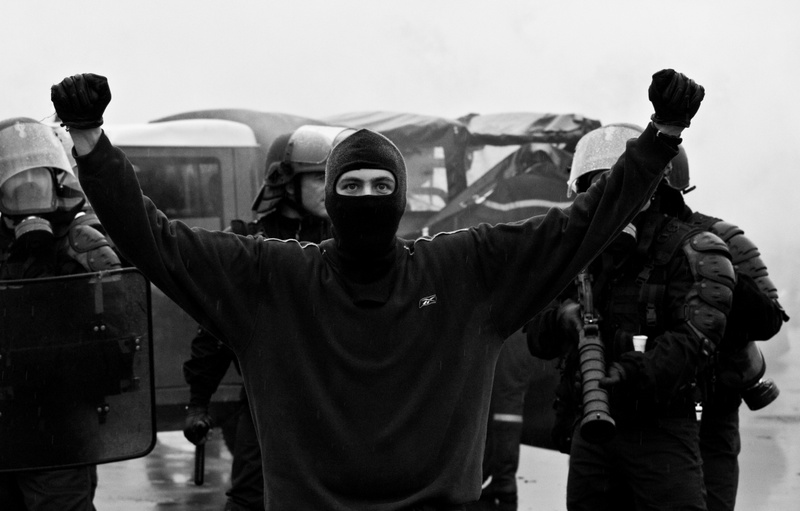 Dommage que l'on ne puisse pas voir l'expression de tes deux collègues derrière cet énergumène qui me semble plus provocateur que "casseur".