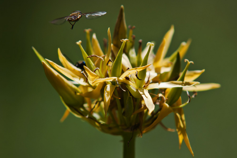 La petite bête cachée derrière la fleur que l'on devine s'est attaquée à un petit exercice d'équilibre un peu après: