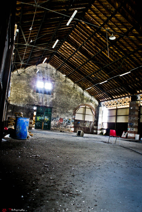 Pour mériter son titre, il aurait fallu que l'on voit mieux les rails ou ce qu'il en reste en les faisant partir du coin. Le bleu et le rouge justifient la couleur. En N&B, ça devrait le faire aussi