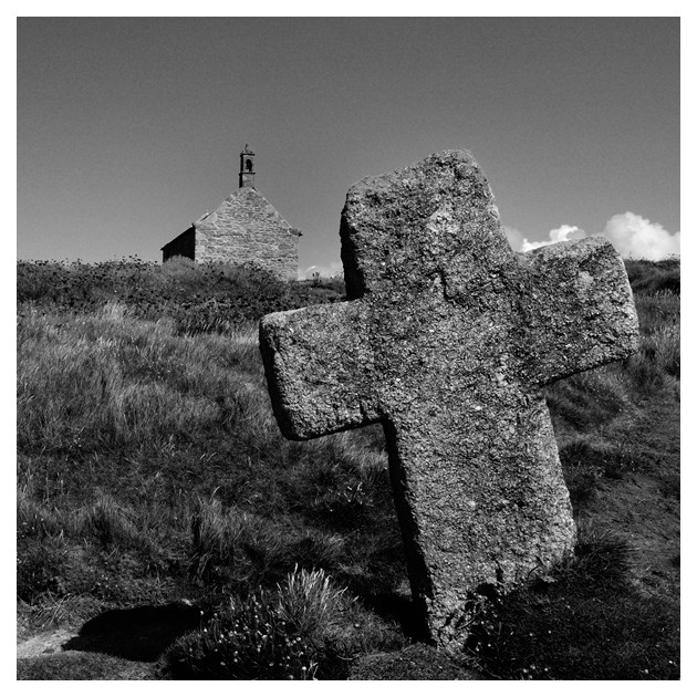 Joli N&B J' aurais peut-être rapproché la chapelle vers la partie gauche pour "l 'aérer" un peu de la croix