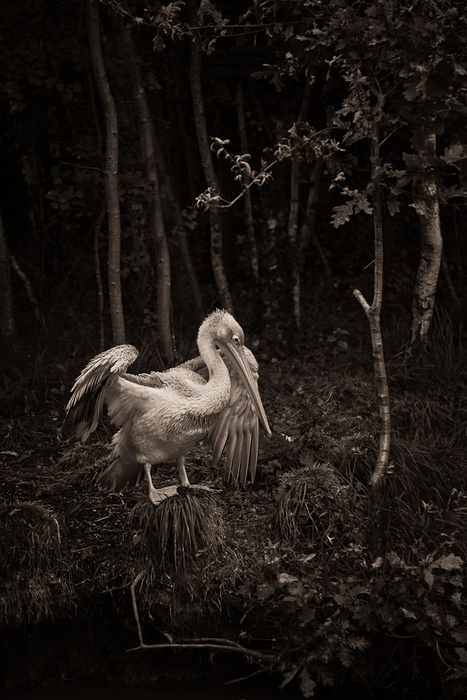 Jolie, cette photo de pélican, mais je n'accroche pas trop avec le traitement.