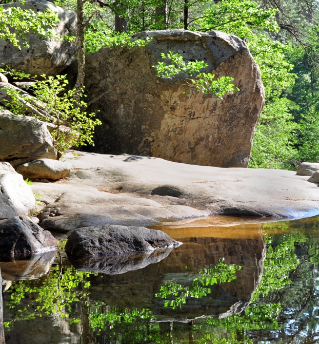 c'est vrai que l'endroit est beau je suis d'accord avec fotoamat sur le cadrage et la compo. Un format portrait qui exploite uniquement le gros rocher et son reflet (avec une lumière moins dure ou un passage en N/B) ou un format paysage qui en montre un peu plus c'est ou?