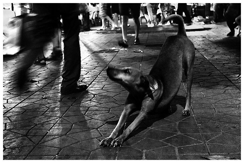 elle est superbe, j'aime tout !! l'angle de PDV la pose du chien en pause vs le mouvement des passants, la lumière, le NB. un gros coup de coeur