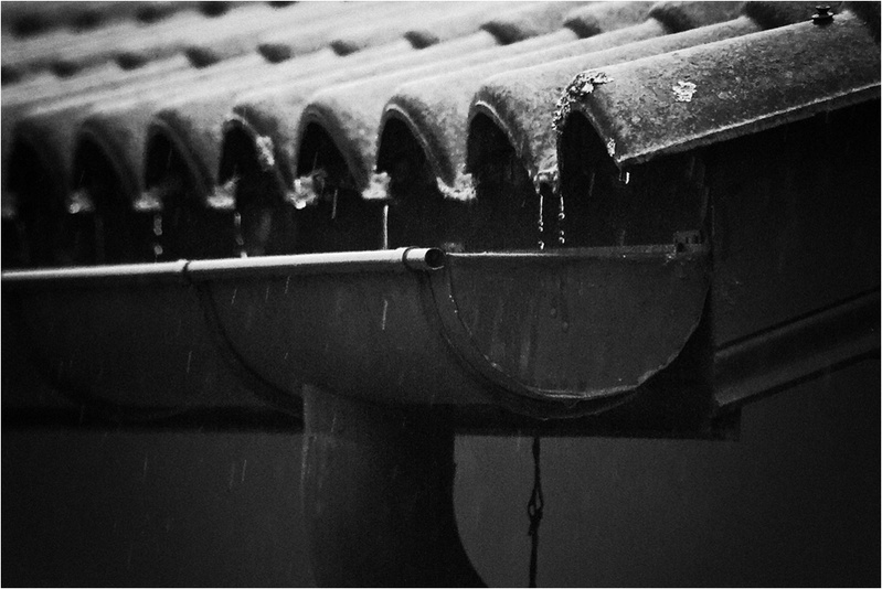 OK, un toit, des gouttes d'eau qui tombent dans une gouttière, mais pas de pluie... ?????