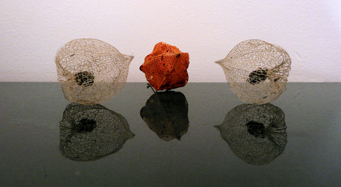 Belle nature morte aux physallis, bravo à toi! Des reflets bien gérés! Il manque peut-être un poil de netteté sur le fruit de gauche, mais un détail, j'aime beaucoup!