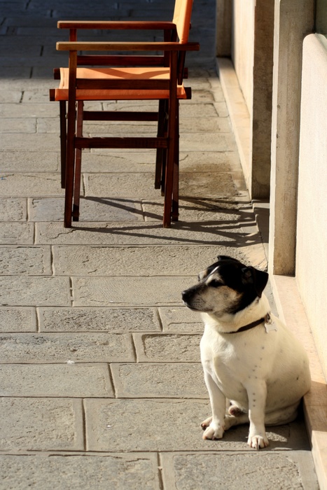 J'ai volontairement coupé le haut de la chaise pour davantage se focaliser sur l'attitude du chien curieux.