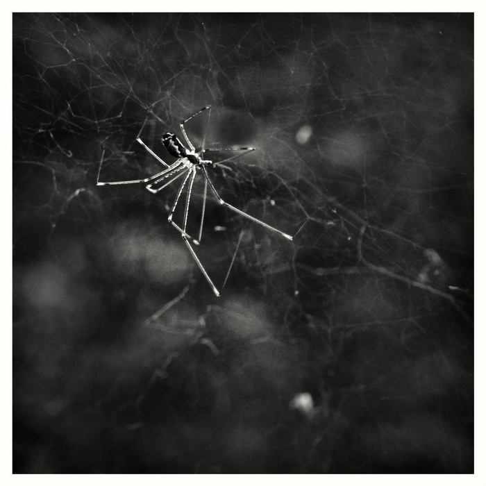pas fan des photos de bébêtes mais je trouve celle-ci très bien réalisée y'a un vrai graphisme entre les pattes, la toile et le flou vaporeux du bokeh !