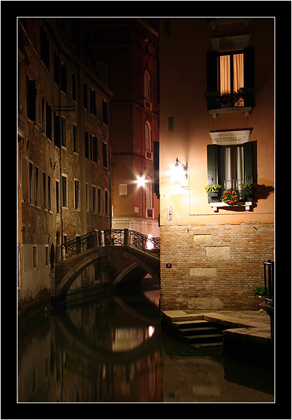 Toujours cette maîtrise incroyable de la lumière...Tout me plaît ici, en particulier les couleurs briques des façades mises en valeur par un éclairage chaud. Ah, ces ponts vénitiens... Encore! et bravo!