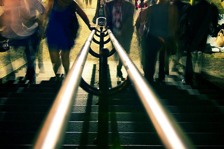 bienvenue sur CP j'aime bien l'idée et la silhouette de la femme en bleu par contre je me demande si je n'aurai pas recadré un peu en carré pour décentrer la rampe et limiter les personnages (en ne gardant que celui qui a le tee shirt rouge et bleu)