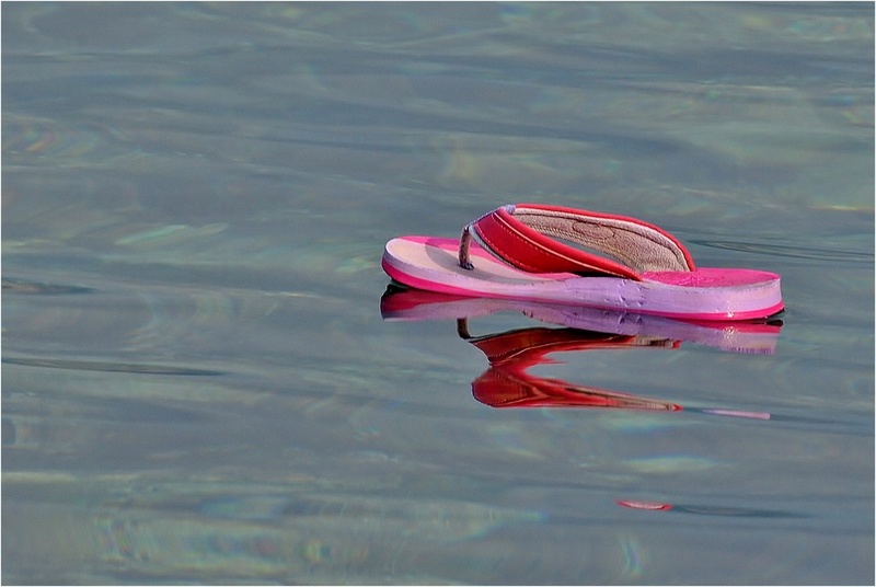 un petit clin d'oeil au vacancier qui nous laisse des souvenir de leur passage,se matin petite promenade au bord de mer il y avait cette petite tong qui recherché son propriétaire et oui avant on abandonné les chien et maintenant c'es tau tour des tong