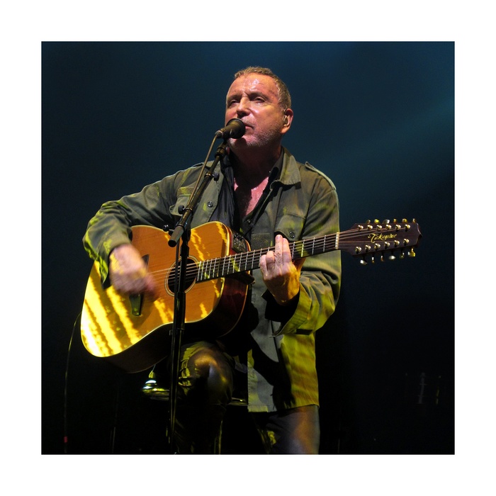 Deux sentiments contradictoires : je déteste le personnage (je ne parle pas de l'artiste hein !) mais je trouve que cet éclairage donne à sa tenue un côté guerrier d'opérette qui lui sied à merveille... jusqu'à sa gratte qui as adopté une tenue de camouflage !