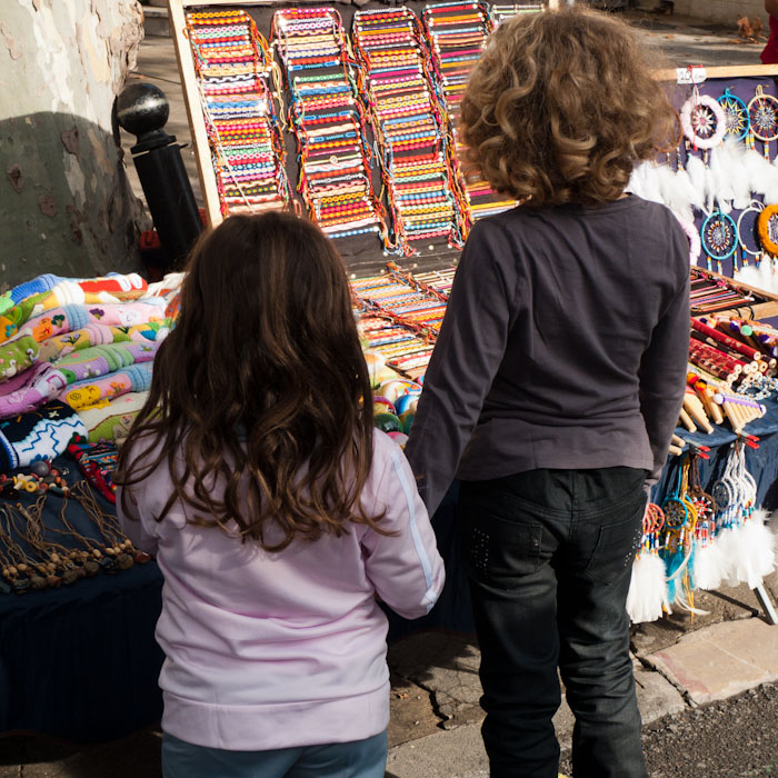 Ces gamins étaient touchants, de par leur attitude (ils se tenaient par la main, on le devine) et ils étaient captivés par cet étalage haut en couleurs.