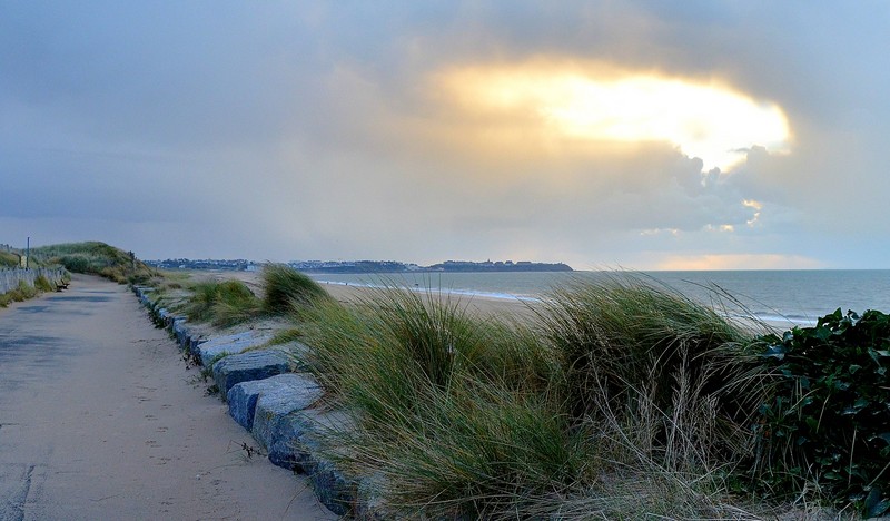 Paysage typique de la Manche. Bien vu le trou des nuages J'aurai préféré que les herbes ne cassent pas la ligne de la mer.