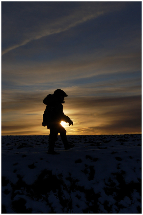 jolie image, jolie silhouette de... "cosmonaute ?" ou motard, le sol avec la neige est peut-être un peu trop sombre.