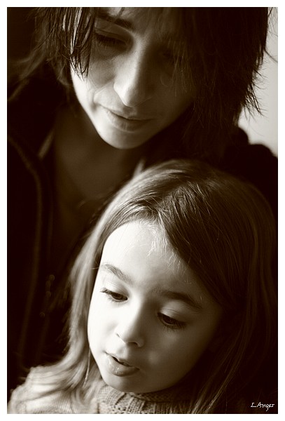 Joli portrait, instant bien saisi ... on ressent bien le regard attentioné de la mère et le regard de "découverte" de la petite fille. Le visage de la petite fille est un peu surex... c'est vrai, mais ça reste un beau portrait