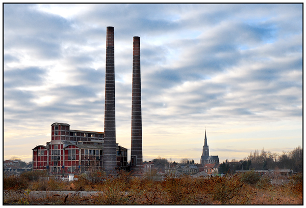 Moi j'aime beaucoup la compo avec cette usine et l'église qui se dresse dérrière et ce ciel superbe qui donne beaucoup de contraste aux couleurs de l'ensemble...