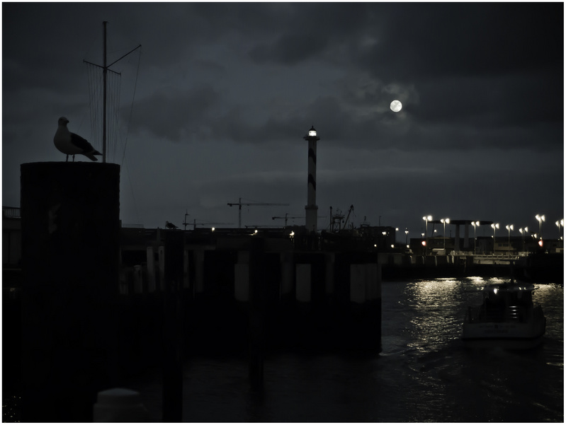 Belle ambiance avec la lune et le goéland.