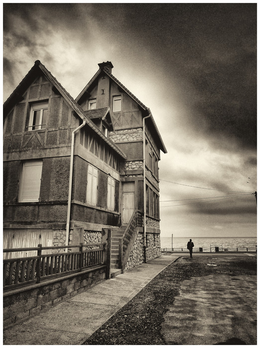 Belle atmosphère "engendrée" avec le traitement et un + pour le personnage bien placé sur un point fort Un petit bémol pour la déformation de la maison à gauche (grand angle ?) et les fils électriques au fond