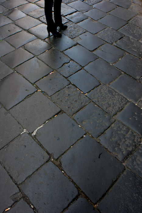 Afin de calmer les esprits potentiellement inquiets ("elle a pris combien?") : on voit ici les jambes de mon amie sur le pavé noir basaltique de Catane en Sicile, en pleine journée ;-)