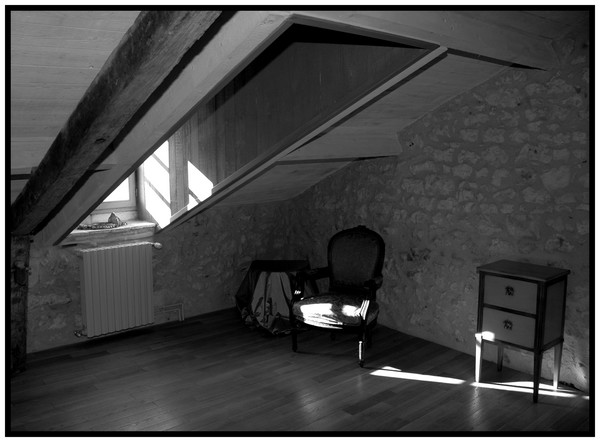 oui pas facile dans cette mansarde de trouver l'équilibre, peut-etre essayer avec dufferents horizons. J'ai accentué pour compenser le manque de netteté et jouer un avec "tons clairs et foncés" de photoshop...
