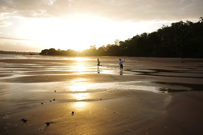 J'aime la douceur des couleurs et le jeu de ces enfants sur cette grande plage