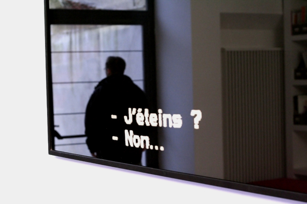 Originale et intriguante ta photo. Je ne vois pas bien ce que c'est. Un reflet dans un écran ? L'image d'un film ? S'il n'y avait pas eu les sous-titres, j'aurais dis un miroir...