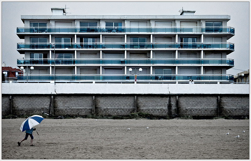 C'est ce qu'on appelle une barre de béton de bord de mer…Très bien vu, avec un plus pour le parapluie aux couleurs de l'immeuble