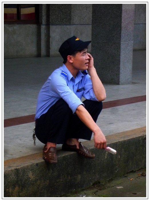 En fait,c'est un chef,un vrai: il est en "train" de regarder ses subalternes en plein travail.