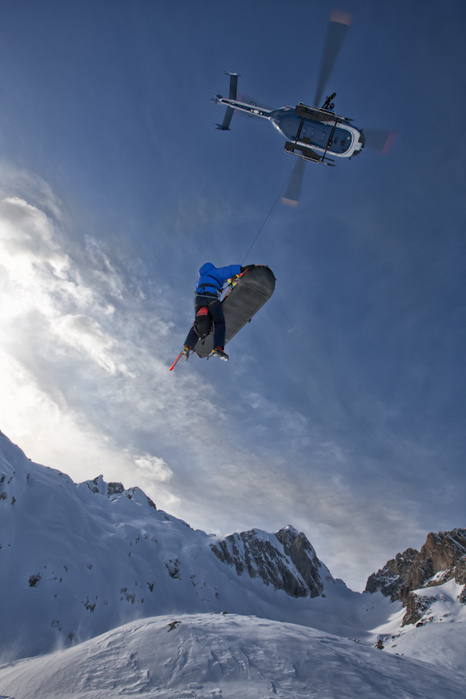 Treuillage d'une civière en haute montagne par le PGHM de chamonix.